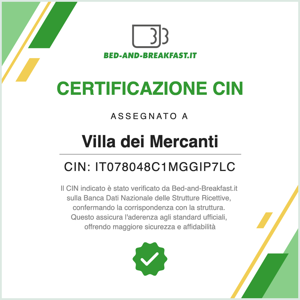 Scegliere Villa dei Mercanti significa avere la certezza di poter soggiornare a pochi metri dalla splendida “spiaggia grande” del “lungomare nuovo” di Diamante. Un plus che renderà la vostra vacanza speciale, soprattutto perché potrete abbandonare l’idea di spostarsi in auto o con i mezzi pubblici. Villa dei Mercanti Bed & Breakfast si trova anche a 100 metri dal “lungomare vecchio”, a picco sul mare e dal Centro Storico, cuore pulsante della famosa cittadina turistica dell’Alto Tirreno Cosentino. Le nostre camere sono caratterizzate da un colore che ne descrive l’essenza, sono curate nei minimi particolari e dotate di ogni comfort. Il nostro agrumeto caratterizza l’area Solarium, dove vengono servite ogni mattina le ormai famose colazioni di Tania, elemento distintivo che rende il nostro B&B a Diamante il luogo ideale in cui lasciarsi conquistare dai profumi e dai sapori della Riviera dei Cedri. Il nostro obiettivo è farti soggiornare in un ambiente familiare. Dopo una giornata di mare e relax, farti godere dei romantici tramonti alla vista dell’Isola di Cirella. Momenti speciali, che daranno colore alla tavolozza delle tue vacanze in Calabria.